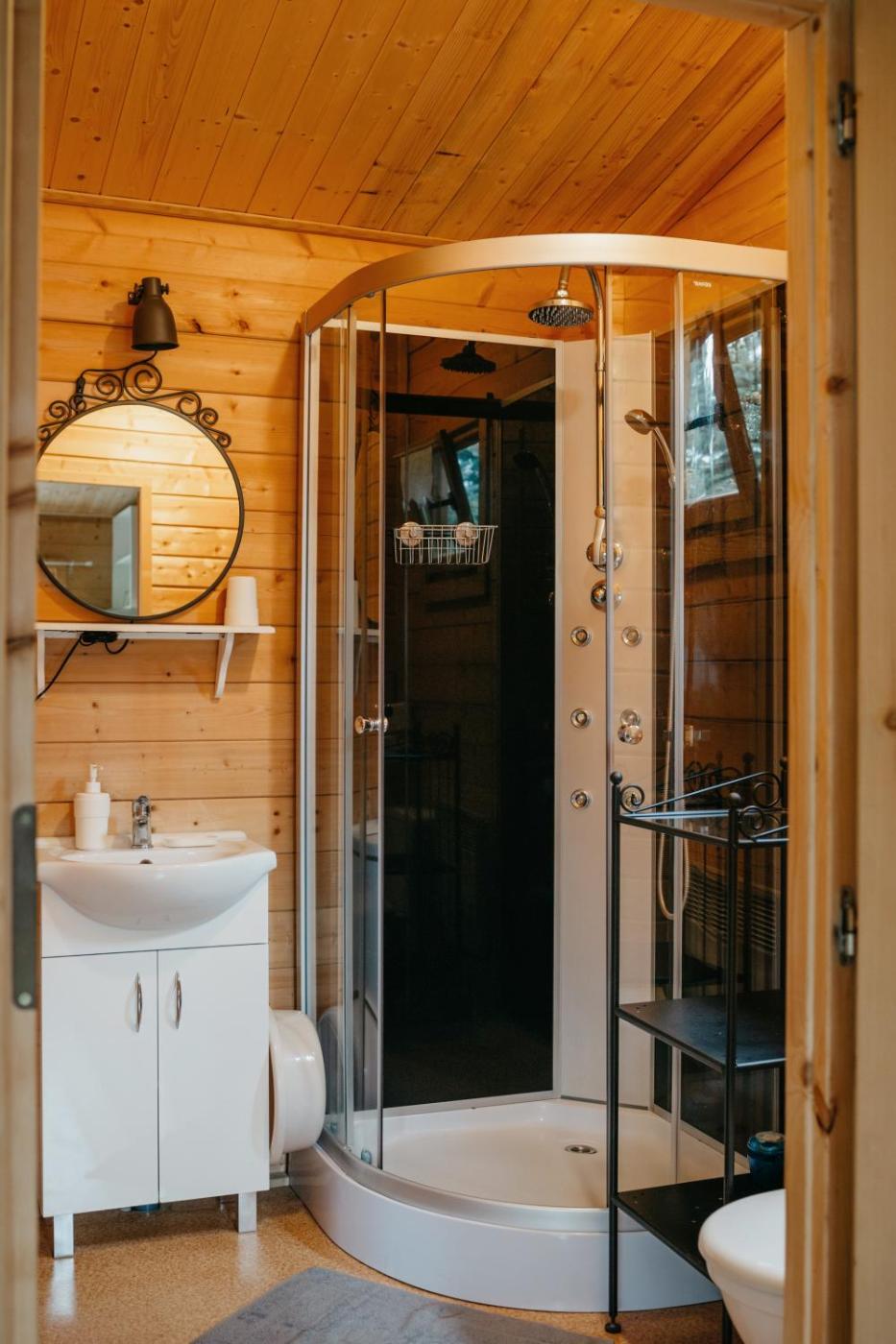 Domek. This air-conditioned chalet includes 1 living room, 1 separate bedroom and 1 bathroom with a shower. Guests will find a stovetop, a refrigerator, kitchenware and an electric kettle in the well-fitted kitchen. The chalet also features a barbecue. The chalet offers a wardrobe, a high chair for children, parquet floors, a flat-screen TV, as well as garden views. The unit has 2 beds. Domek - 3 osobowy. Powierzchnia pokoju ok.: 25 mkw. ;