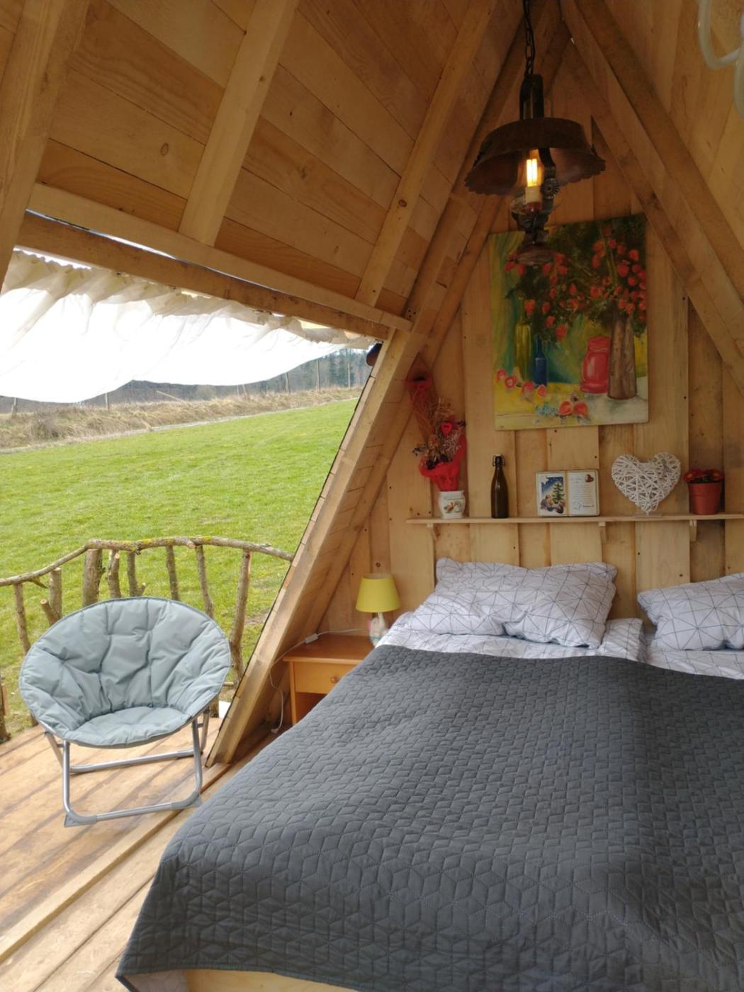 Namiot. Guests will find a refrigerator and kitchenware in the kitchenette. The tent also offers a barbecue. The tent provides a private entrance, a tea and coffee maker, a terrace with garden views as well as a shared bathroom featuring a shower. The unit offers 1 bed. Namiot - 2 osobowy. Powierzchnia pokoju ok.: 9 mkw.