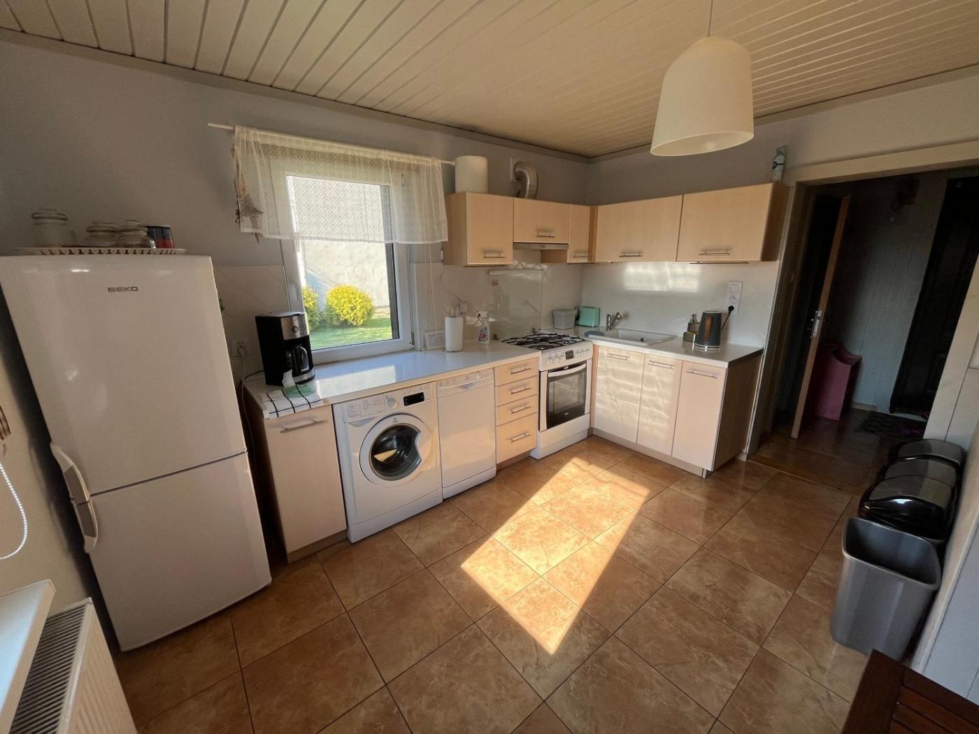 Dom z 2 sypialniami. This holiday home offers a fireplace. Featuring a private entrance, this holiday home comprises 1 living room, 2 separate bedrooms and 1 bathroom with a shower and a hairdryer. In the fully equipped kitchen, guests will find a stovetop, a refrigerator, a dishwasher and kitchenware. The holiday home provides a washing machine, soundproof walls, a tea and coffee maker, a flat-screen TV with cable channels, as well as garden views. The unit offers 3 beds. Dom wakacyjny - 6 osobowy. Powierzchnia pokoju ok.: 65 mkw.
