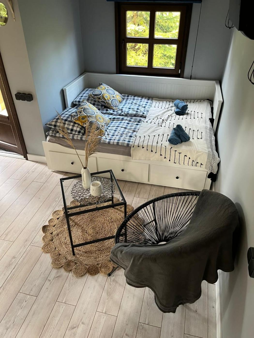 Dom z 1 sypialnią. This holiday home includes 1 living room, 1 separate bedroom and 1 bathroom with a shower and free toiletries. Guests will find a stovetop, a refrigerator, kitchenware and an electric kettle in the well-fitted kitchen. The holiday home also features a barbecue. Boasting a terrace with garden views, this holiday home also offers air conditioning and a flat-screen TV with cable channels. The unit has 2 beds. Dom wakacyjny - 3 osobowy. Powierzchnia pokoju ok.: 32 mkw.