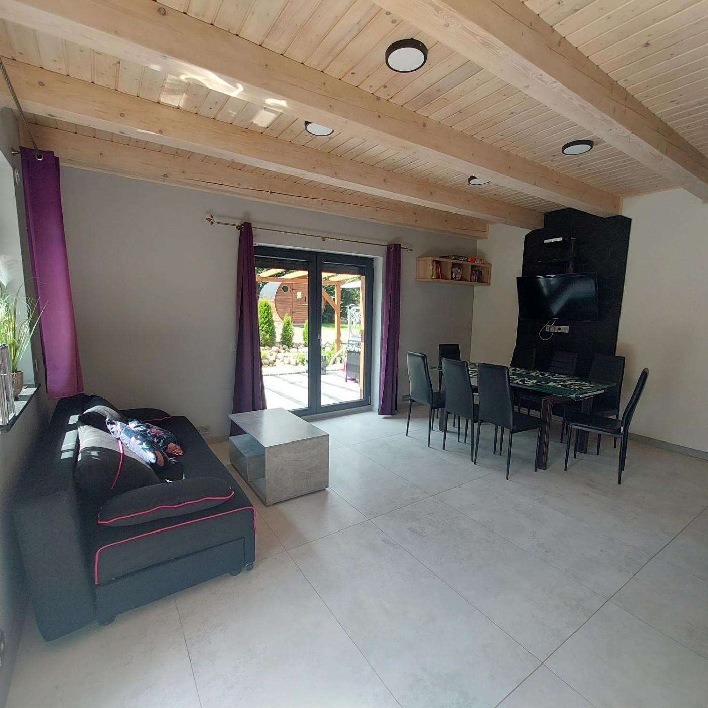 Dom z 2 sypialniami. This holiday homes special feature is the sauna. Guests will find a stovetop, a refrigerator, a dishwasher and kitchenware in the well-fitted kitchen. The holiday home also provides guests with a barbecue. Featuring a terrace with garden views, this holiday home also provides a washing machine and a flat-screen TV with streaming services. The unit offers 8 beds. Dom wakacyjny - 9 osobowy. Powierzchnia pokoju ok.: 70 mkw.
