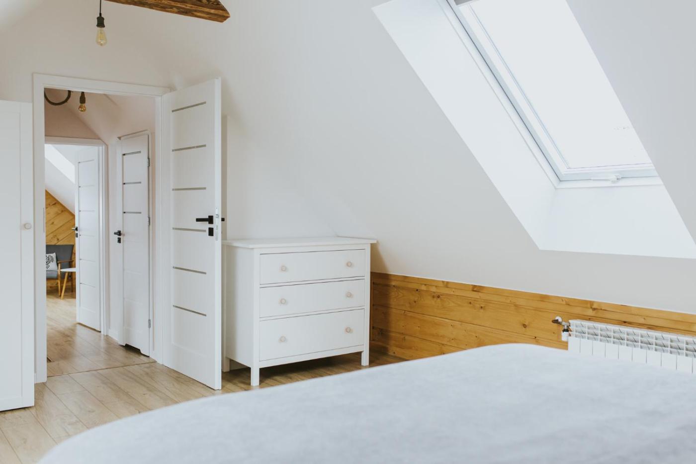 Dom z 3 sypialniami. The holiday home includes a shared bathroom, well-fitted with a walk-in shower, a bath, a hairdryer and slippers. Guests will find a stovetop, a refrigerator, a dishwasher and kitchenware in the well-fitted kitchen. The holiday home also features a barbecue. The holiday home offers a washing machine, a private entrance, a coffee machine, a flat-screen TV with streaming services, as well as garden views. The unit has 5 beds. Dom wakacyjny - 12 osobowy. Powierzchnia pokoju ok.: 90 mkw.