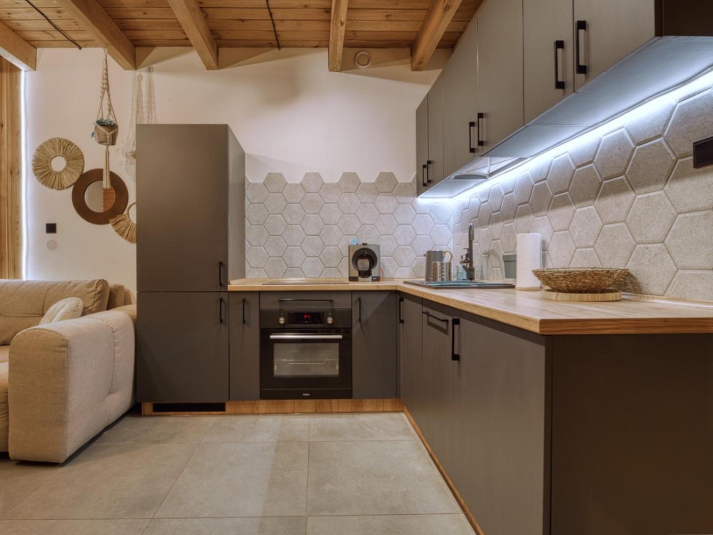 W domu wakacyjnym zapewniono taras, sypialnię (1), salon z telewizorem z płaskim ekranem, aneks kuchenny ze standardowym wyposażeniem, takim jak lodówka i zmywarka, a także łazienkę (1) z prysznicem. Goście mogą podziwiać widok na ogród. W domu wakacyjnym zapewniono ręczniki i pościel.