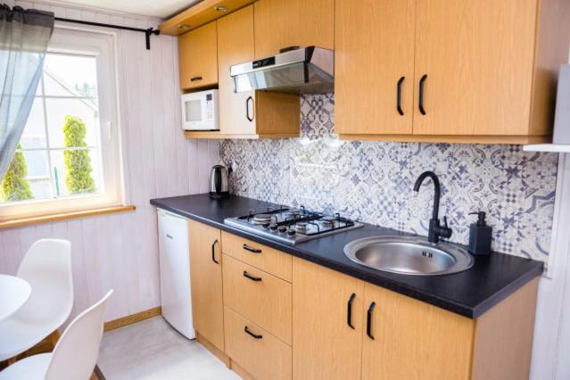 Dom z 2 sypialniami. Boasting a private entrance, this holiday home comes with 1 living room, 2 separate bedrooms and 1 bathroom with a shower and a hairdryer. Guests will find a stovetop, a refrigerator, a microwave and an electric kettle in the well-fitted kitchen. The holiday home also includes a barbecue. Featuring a terrace with sea views, this holiday home also features a seating area and a flat-screen TV. The unit has 4 beds. Dom wakacyjny - 6 osobowy. Powierzchnia pokoju ok.: 60 mkw.