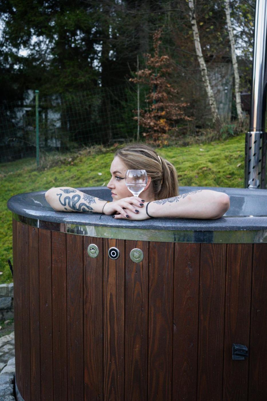 Obiekt Domek za Księżycem - azyl z balią, kominkiem i prywatnym ogrodem, Ustroń oferuje wannę z hydromasażem.