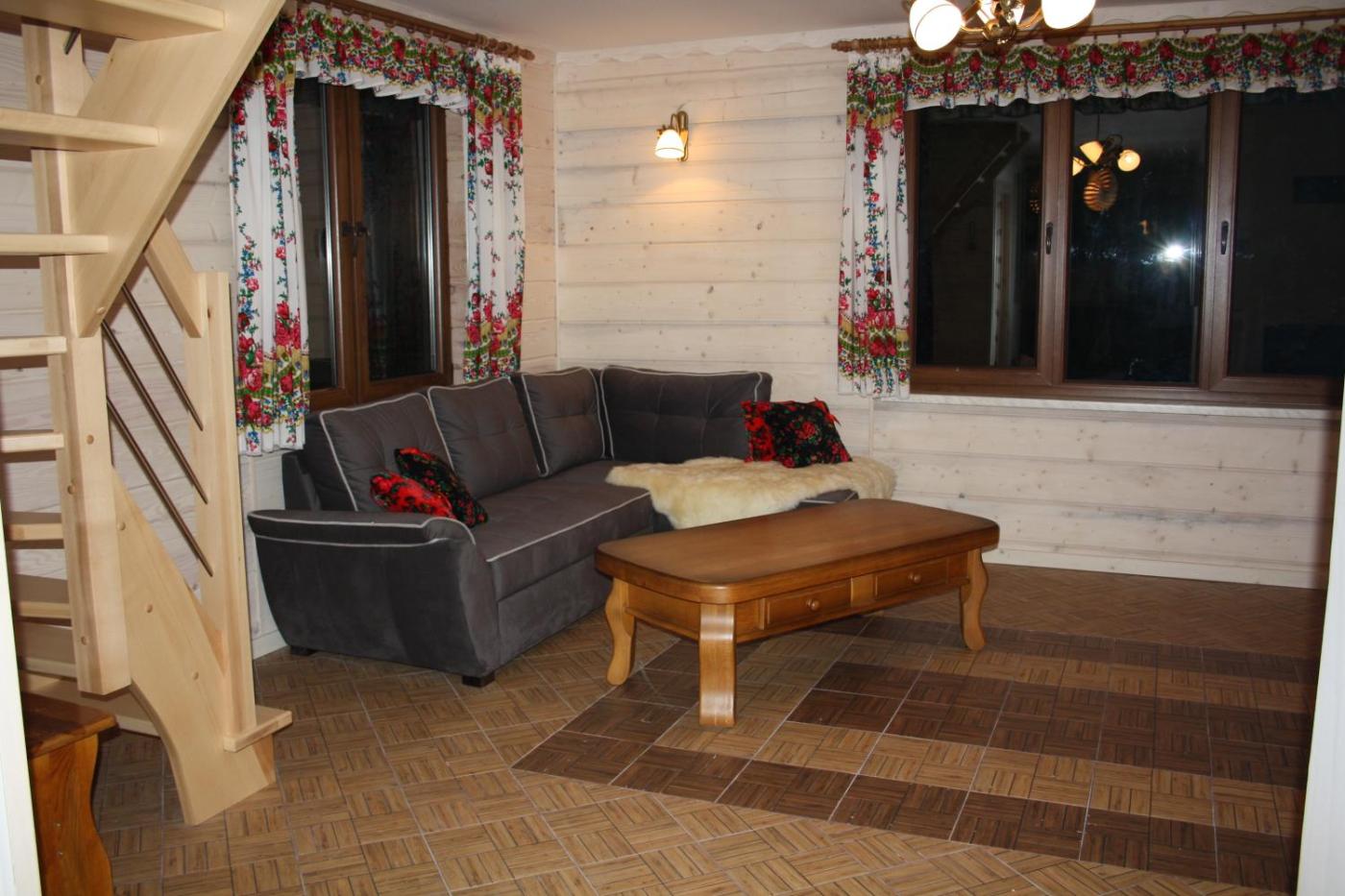 Domek. Guests will have a special experience as this chalet provides a fireplace. The chalet offers a tiled floor, as well as a shared bathroom featuring a shower. Guests will find a stovetop, a refrigerator, kitchenware and an electric kettle in the well-fitted kitchen. The chalet also has a barbecue. This chalet features a TV. The unit offers 6 beds. Domek - 8 osobowy. Powierzchnia pokoju ok.: 6 mkw.