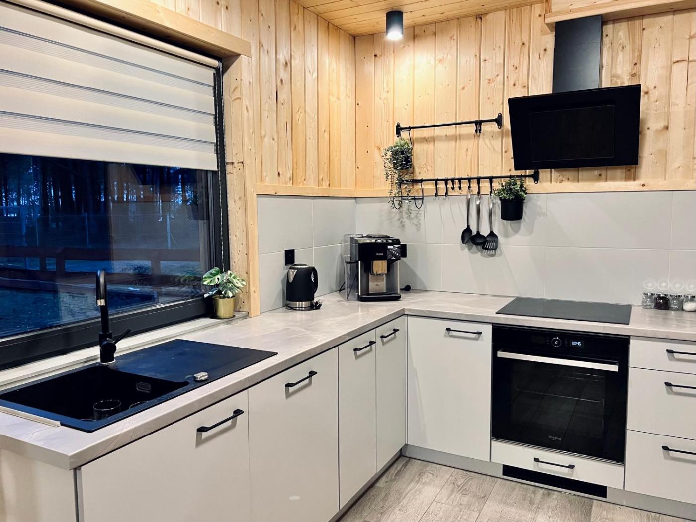 Domek z 2 sypialniami. This chalet features a fireplace. Featuring a private entrance, this air-conditioned chalet comprises 1 living room, 2 separate bedrooms and 1 bathroom with a walk-in shower and a hairdryer. Guests will find a stovetop, a refrigerator, a dishwasher and kitchenware in the kitchen. The chalet also provides guests with a barbecue. Boasting a terrace with lake views, this chalet also provides a washing machine and a flat-screen TV with streaming services. The unit offers 3 beds. Domek - 4 osobowy. Powierzchnia pokoju ok.: 56 mkw.